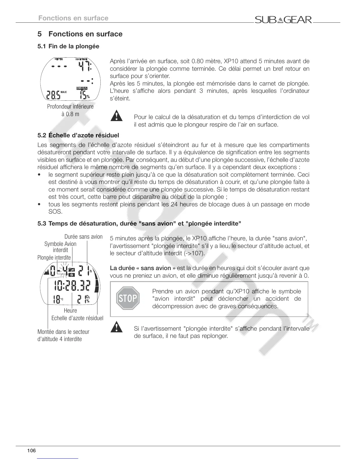 5.3 Temps de désaturation, durée "sans avion" et "plongée interdite"