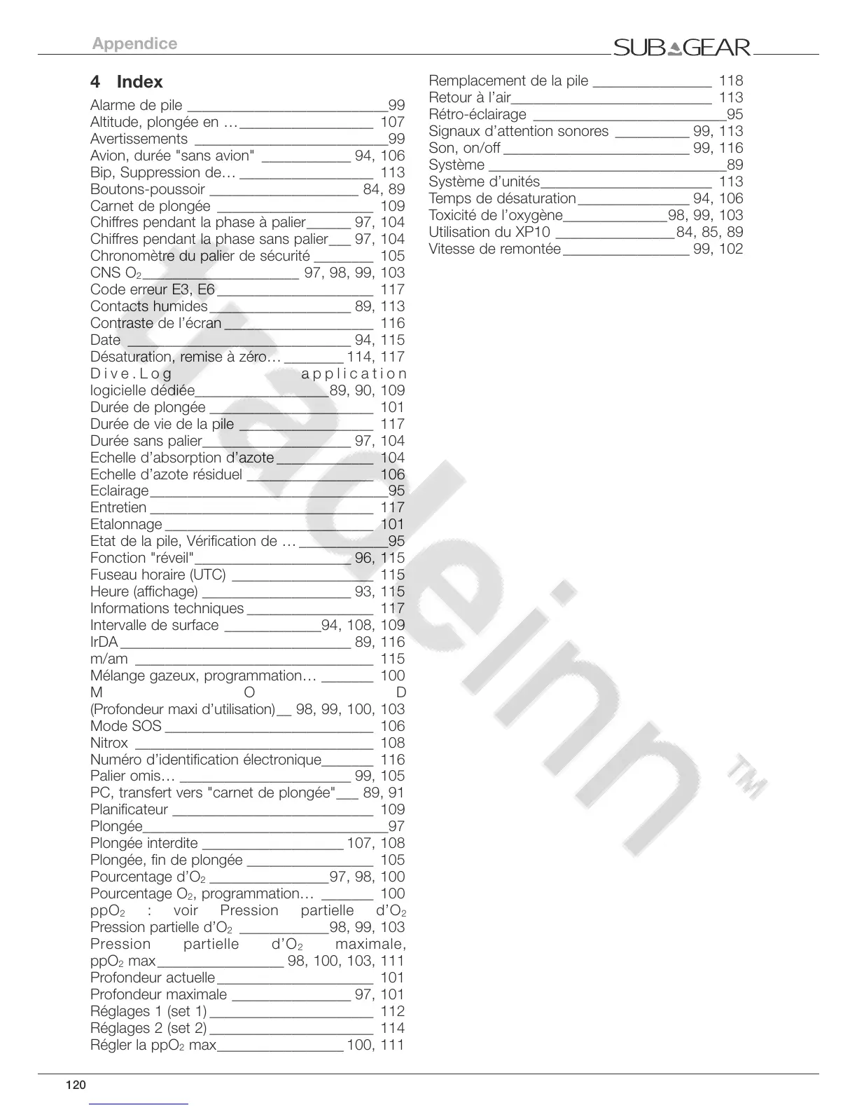 Durée de plongée ______________________ 101