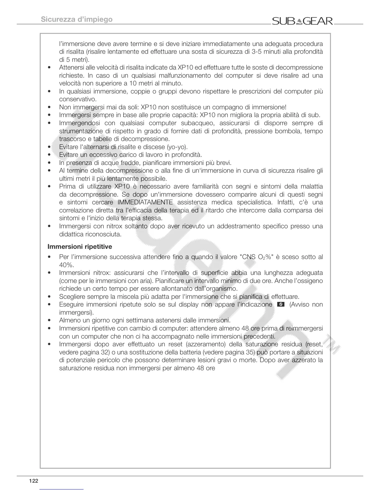 • Non immergersi mai da soli: XP10 non sostituisce un compagno di immersione!