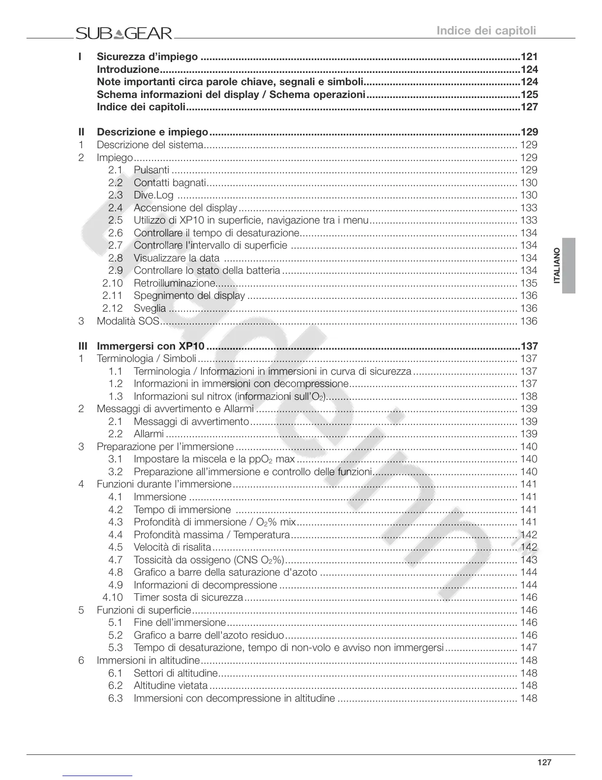 1.2 Informazioni in immersioni con decompressione .......................................................... 137