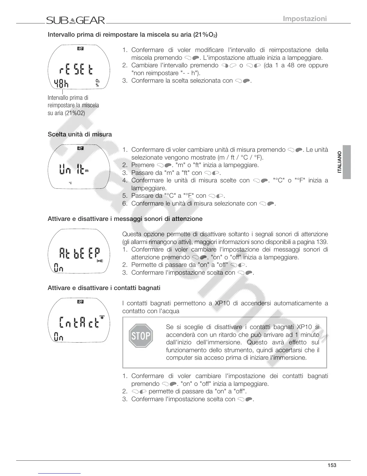 1. Confermare di voler cambiare l'impostazione dei contatti bagnati