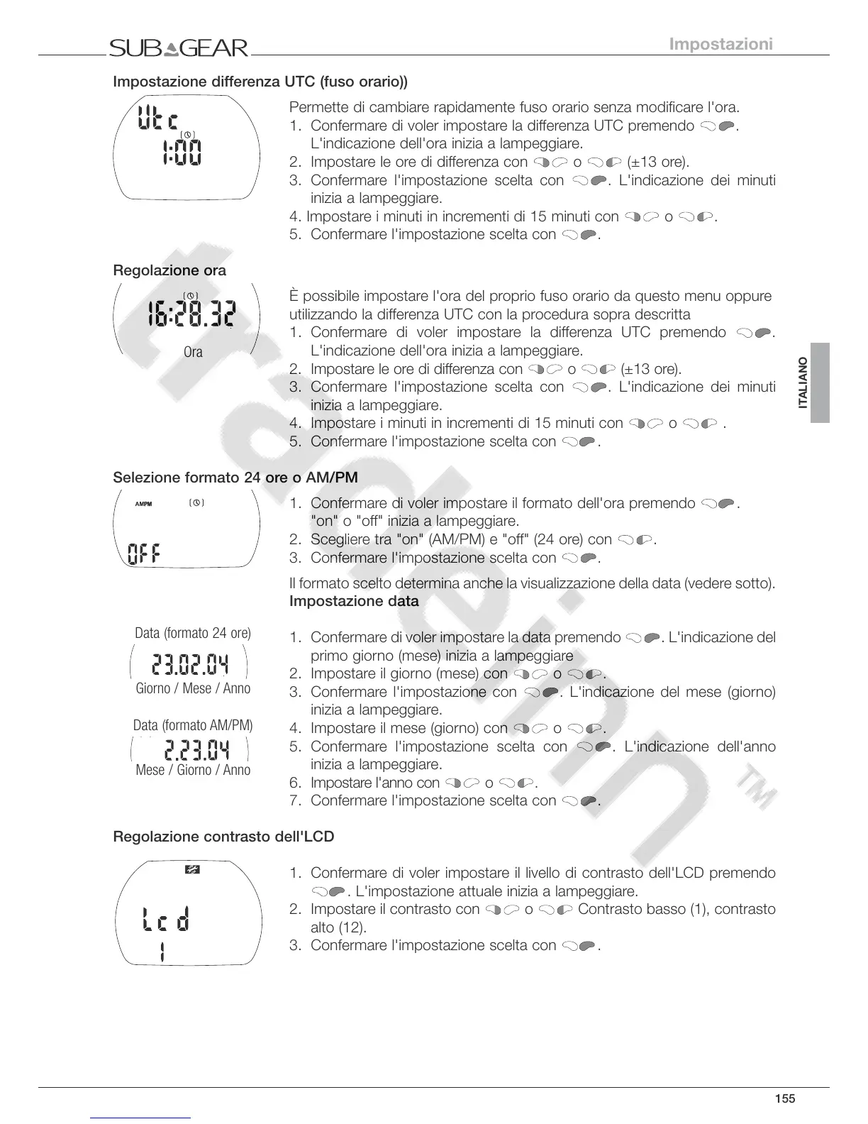 1. Confermare di voler impostare la differenza UTC premendo