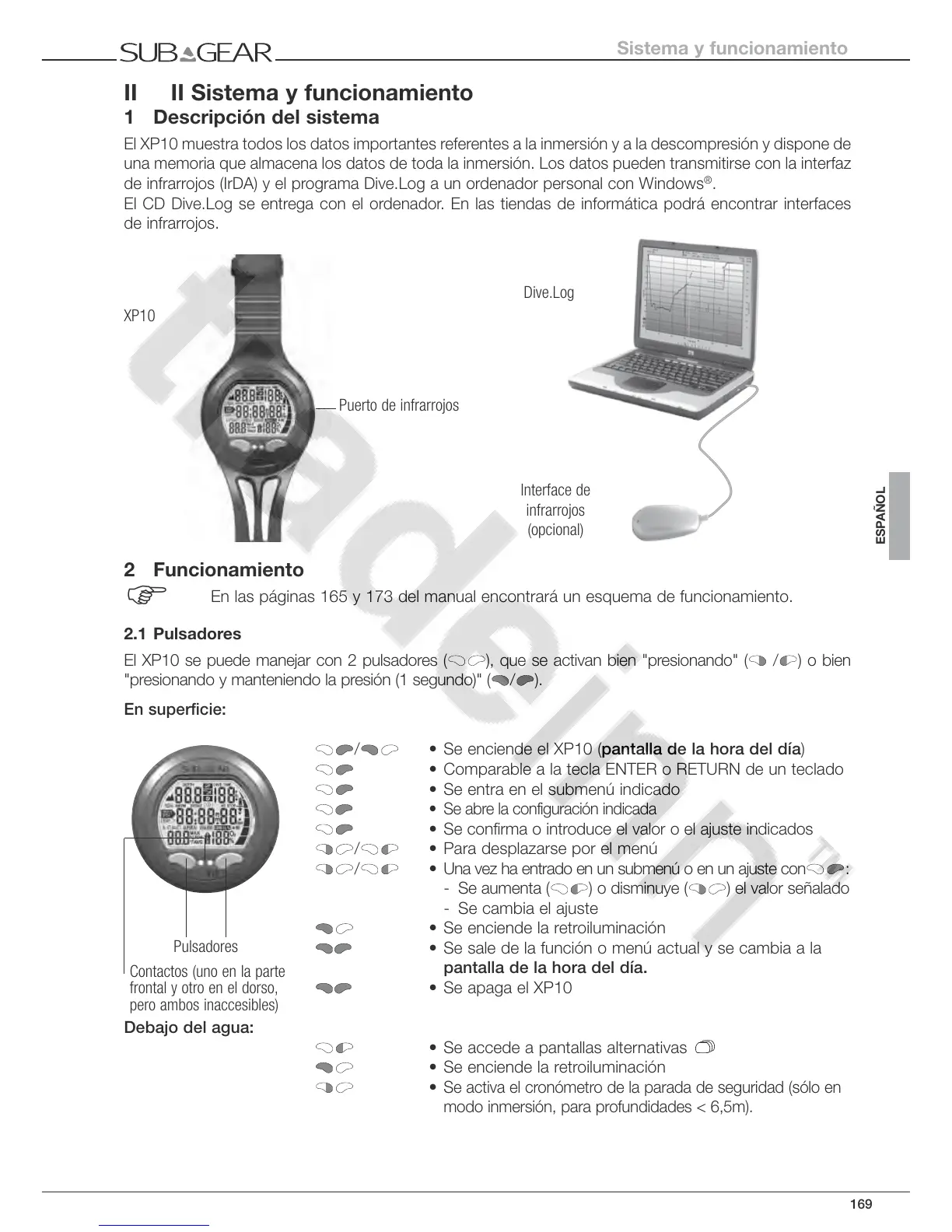 de infrarrojos (IrDA) y el programa Dive.Log a un ordenador personal con Windows