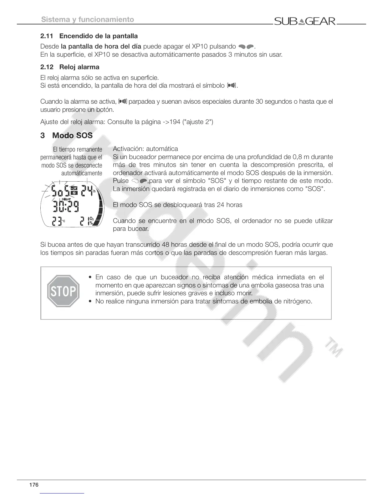 Si bucea antes de que hayan transcurrido 48 horas desde el final de un modo SOS, podría ocurrir que