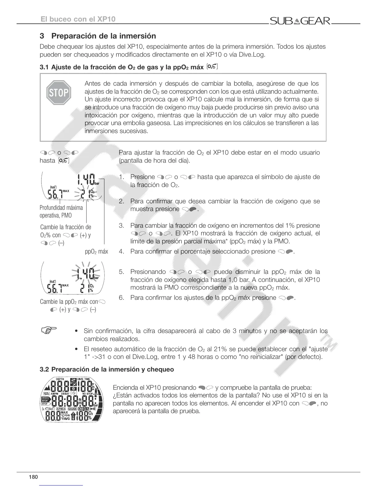 Debe chequear los ajustes del XP10, especialmente antes de la primera inmersión. Todos los ajustes