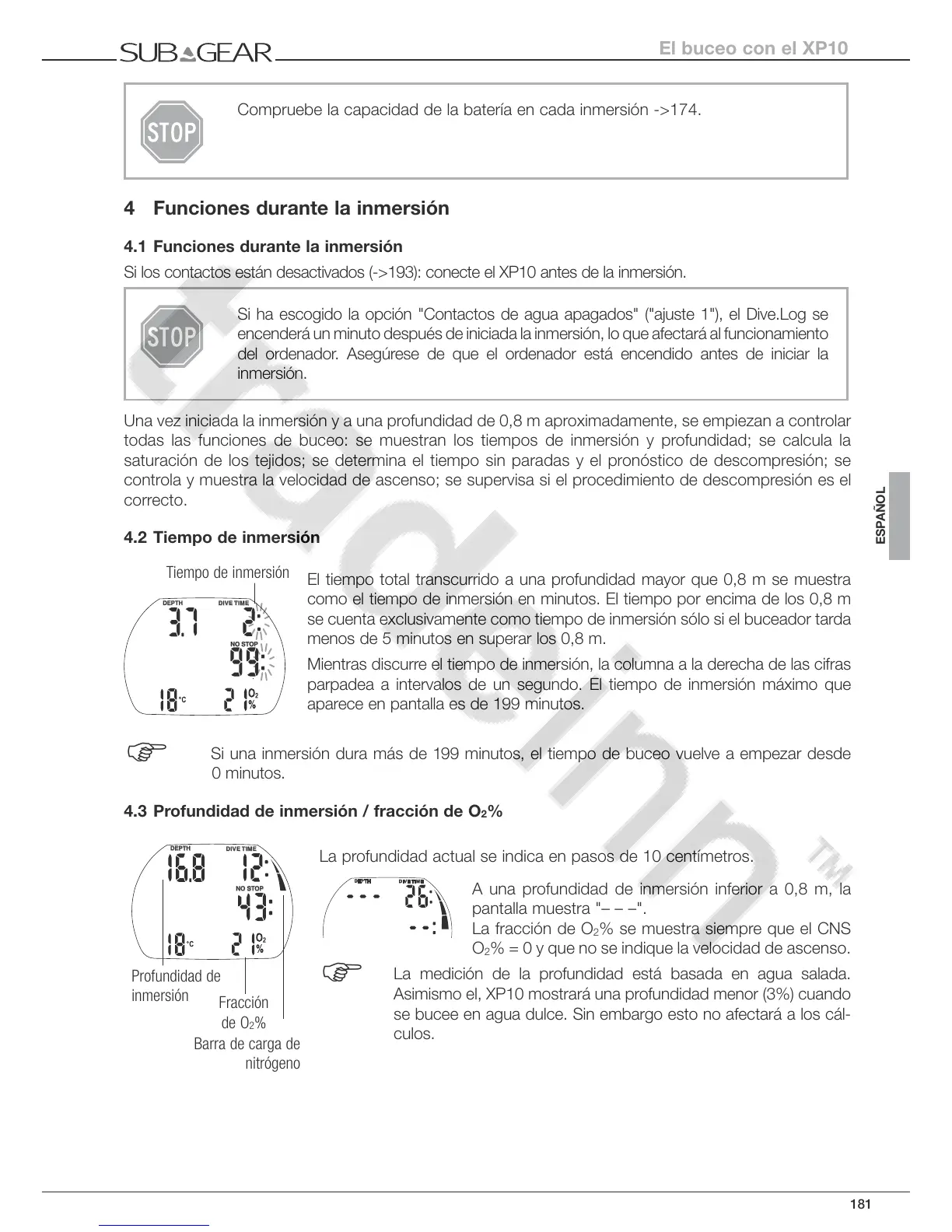 4.1 Funciones durante la inmersión