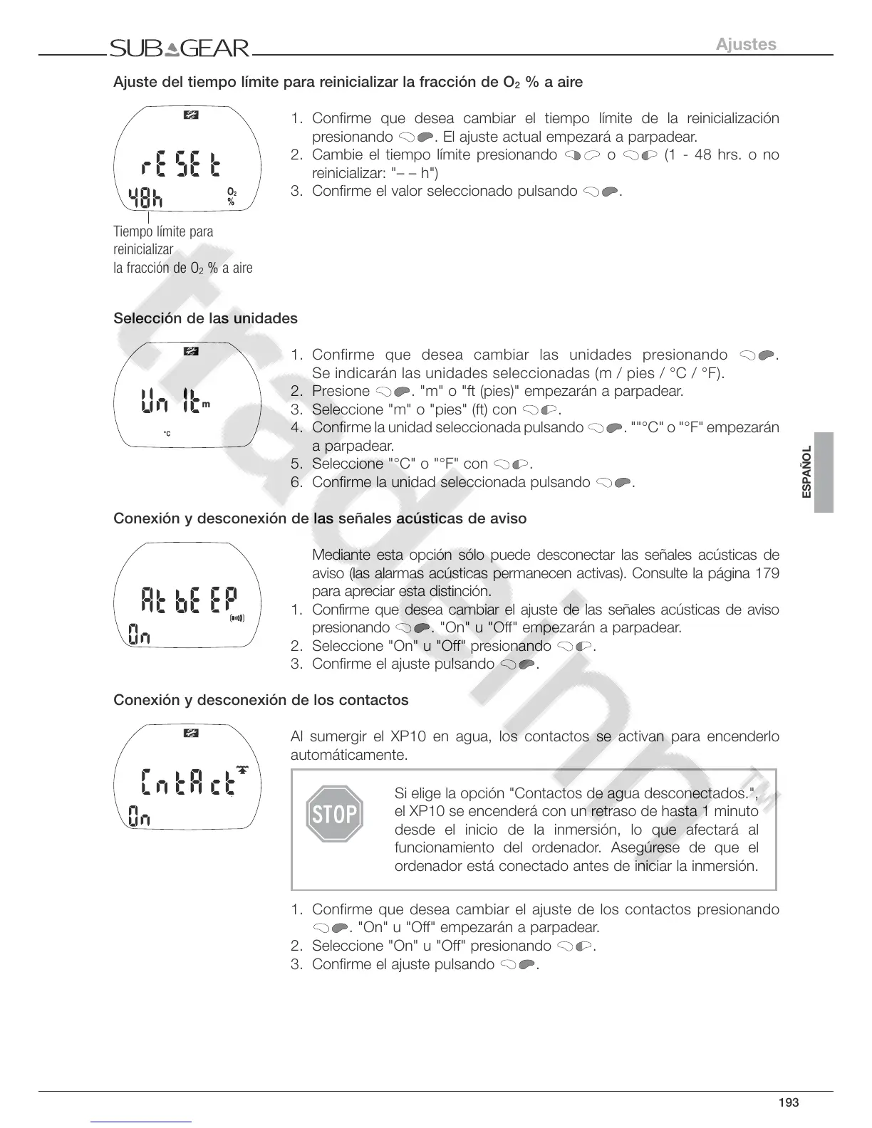 Se indicarán las unidades seleccionadas (m / pies / °C / °F).