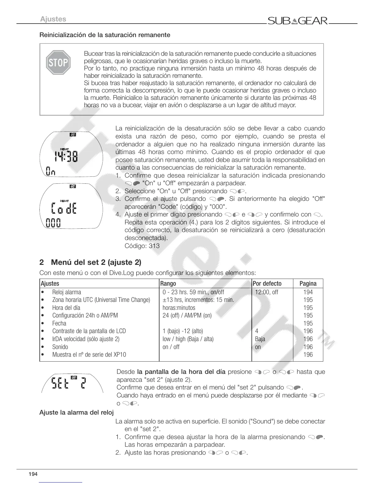 Confirme que desea entrar en el menú del "set 2" pulsando