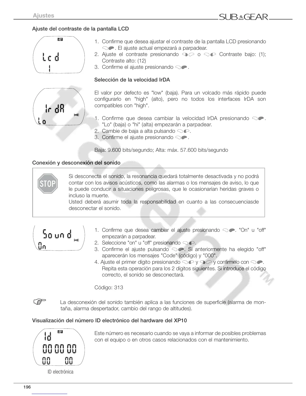 La desconexión del sonido también aplica a las funciones de superficie (alarma de mon-