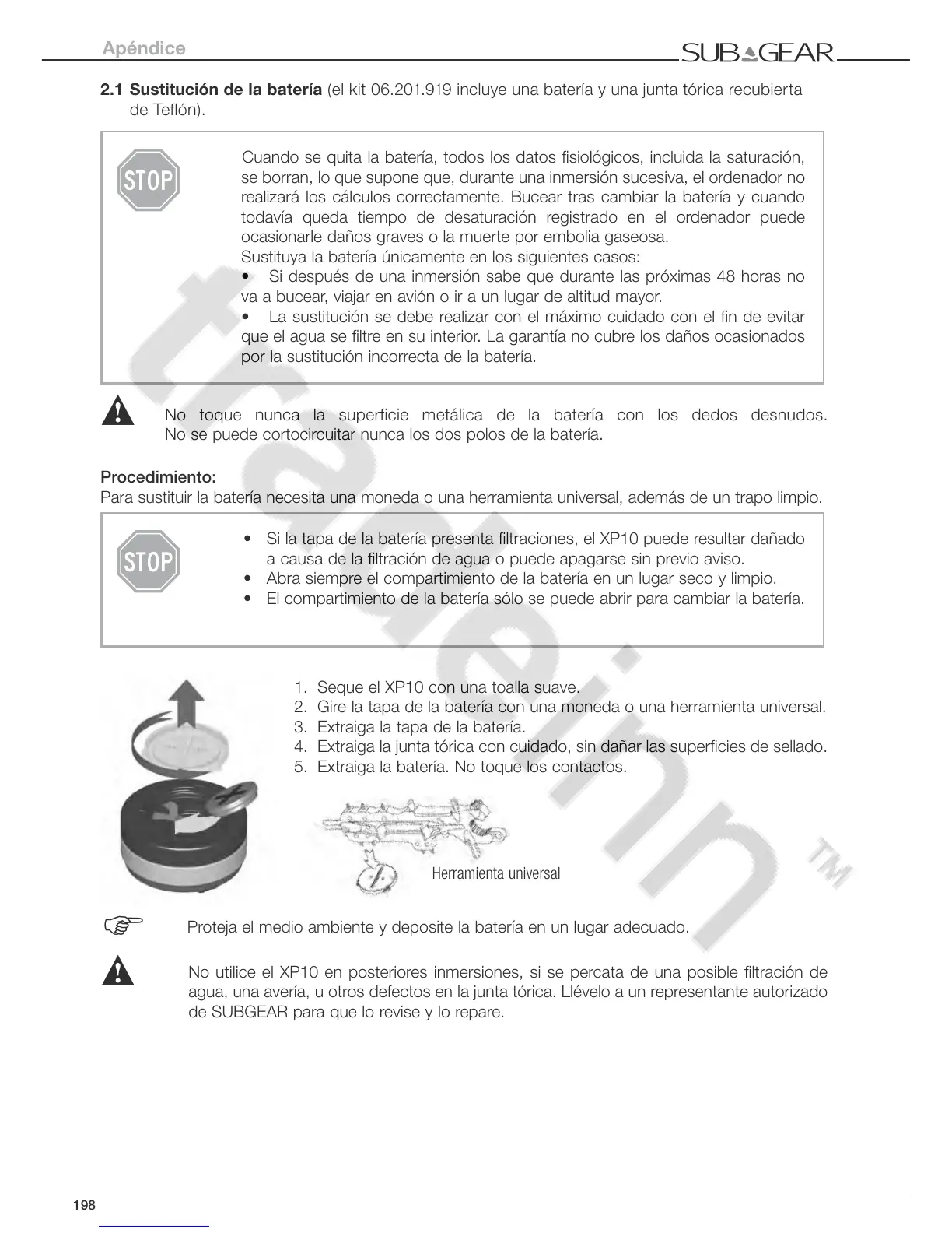 2.1 Sustitución de la batería (el kit 06.201.919 incluye una batería y una junta tórica recubierta