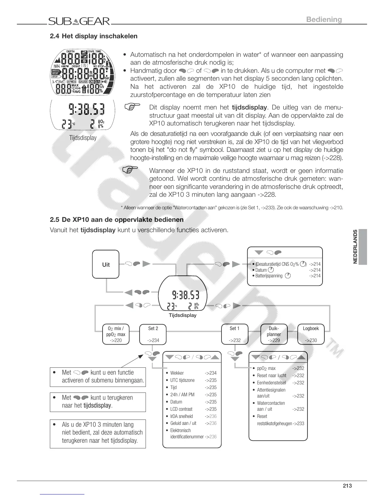 Na het activeren zal de XP10 de huidige tijd, het ingestelde