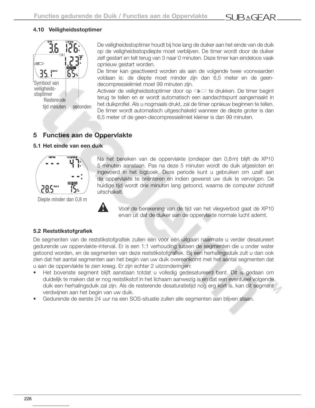 op de veiligheidsstopdiepte moet verblijven. De timer wordt door de duiker