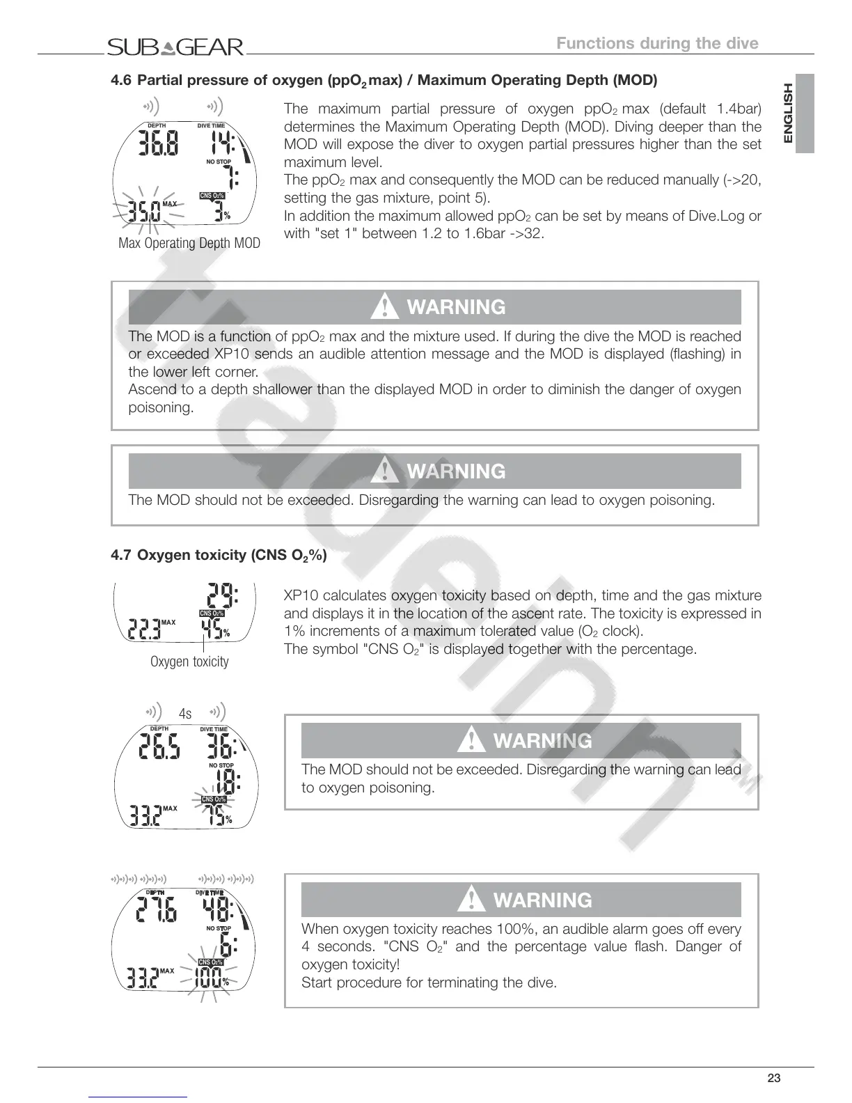 The MOD should not be exceeded. Disregarding the warning can lead to oxygen poisoning.