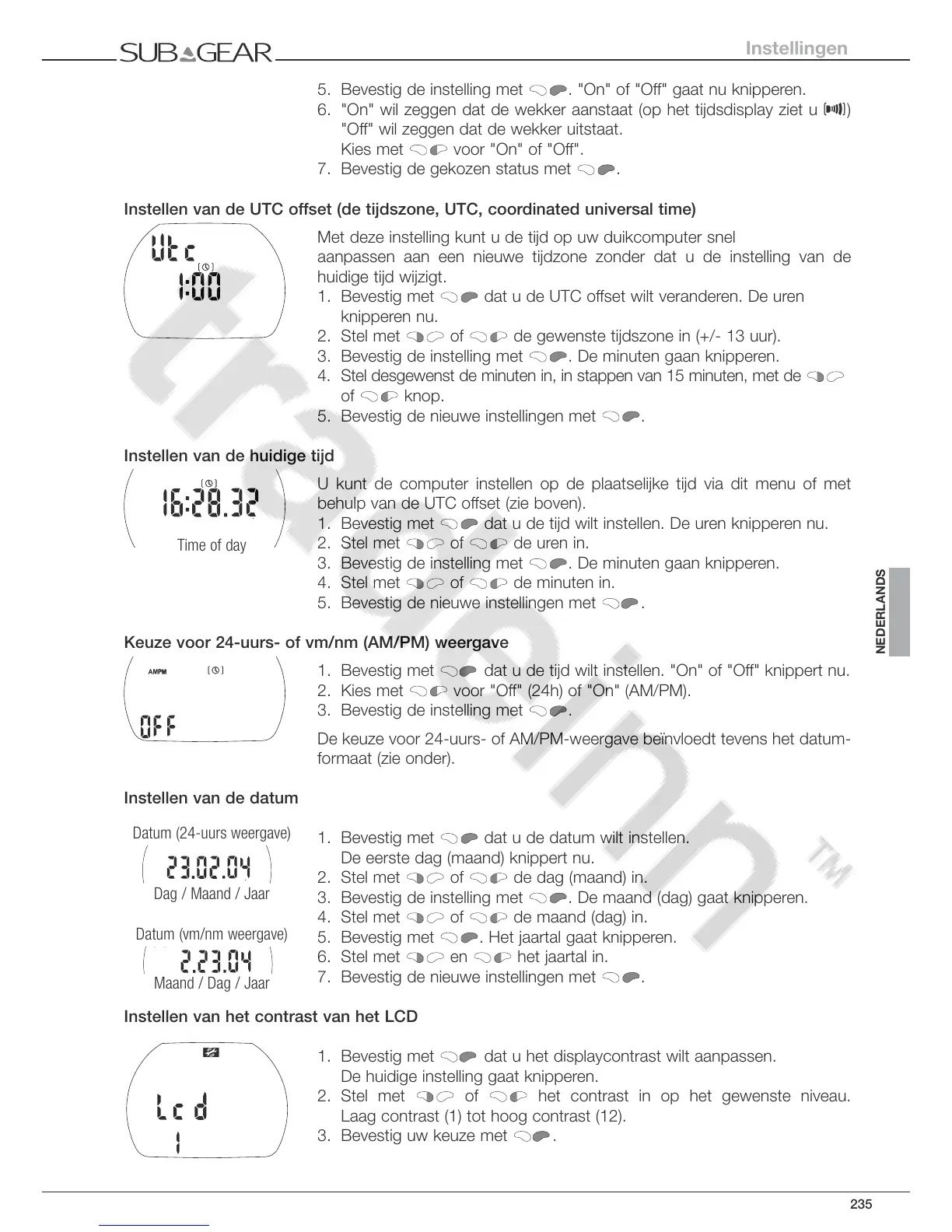 Met deze instelling kunt u de tijd op uw duikcomputer snel