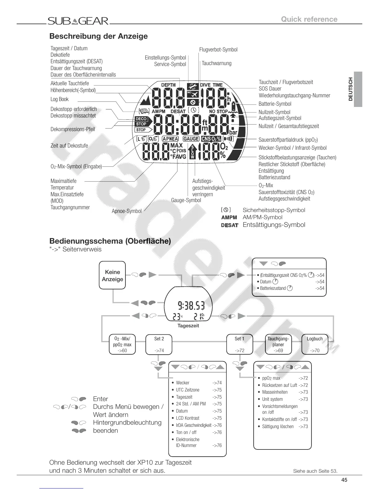 Ohne Bedienung wechselt der XP10 zur Tageszeit
