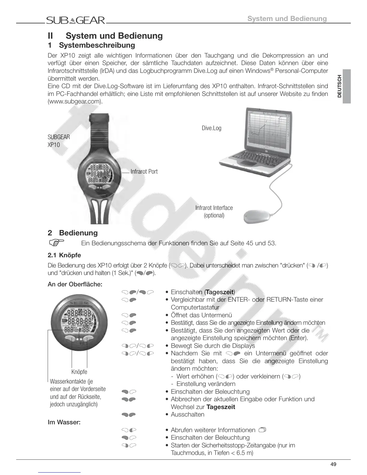 Eine CD mit der Dive.Log-Software ist im Lieferumfang des XP10 enthalten. Infrarot-Schnittstellen sind