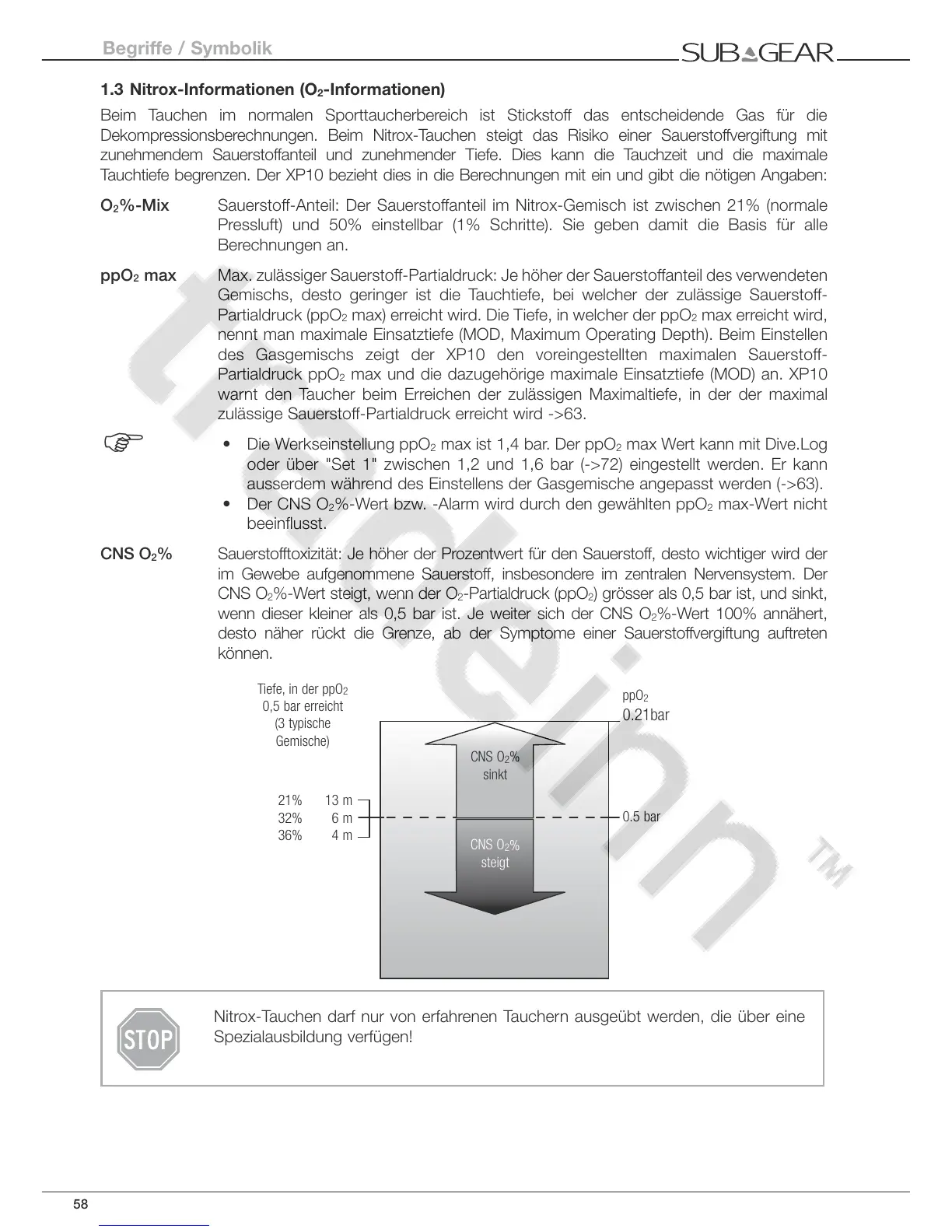 zulässige Sauerstoff-Partialdruck erreicht wird ->63.