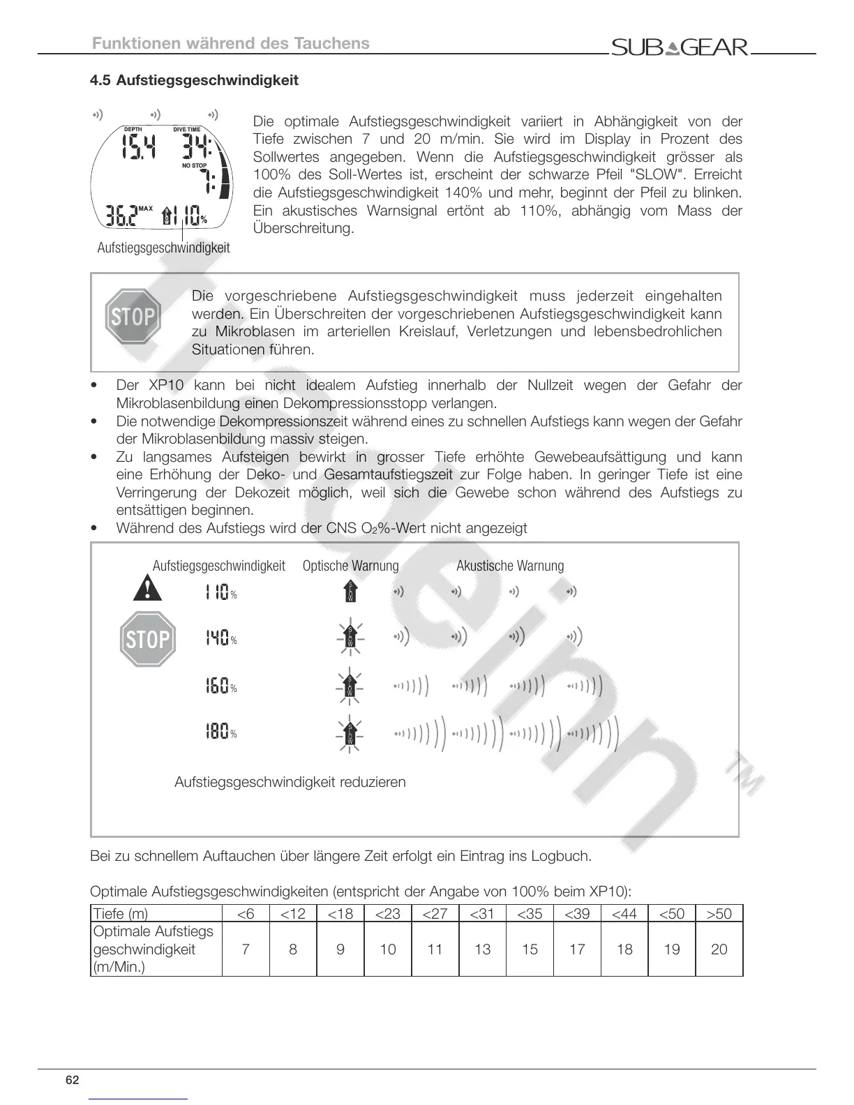 werden. Ein Überschreiten der vorgeschriebenen Aufstiegsgeschwindigkeit kann