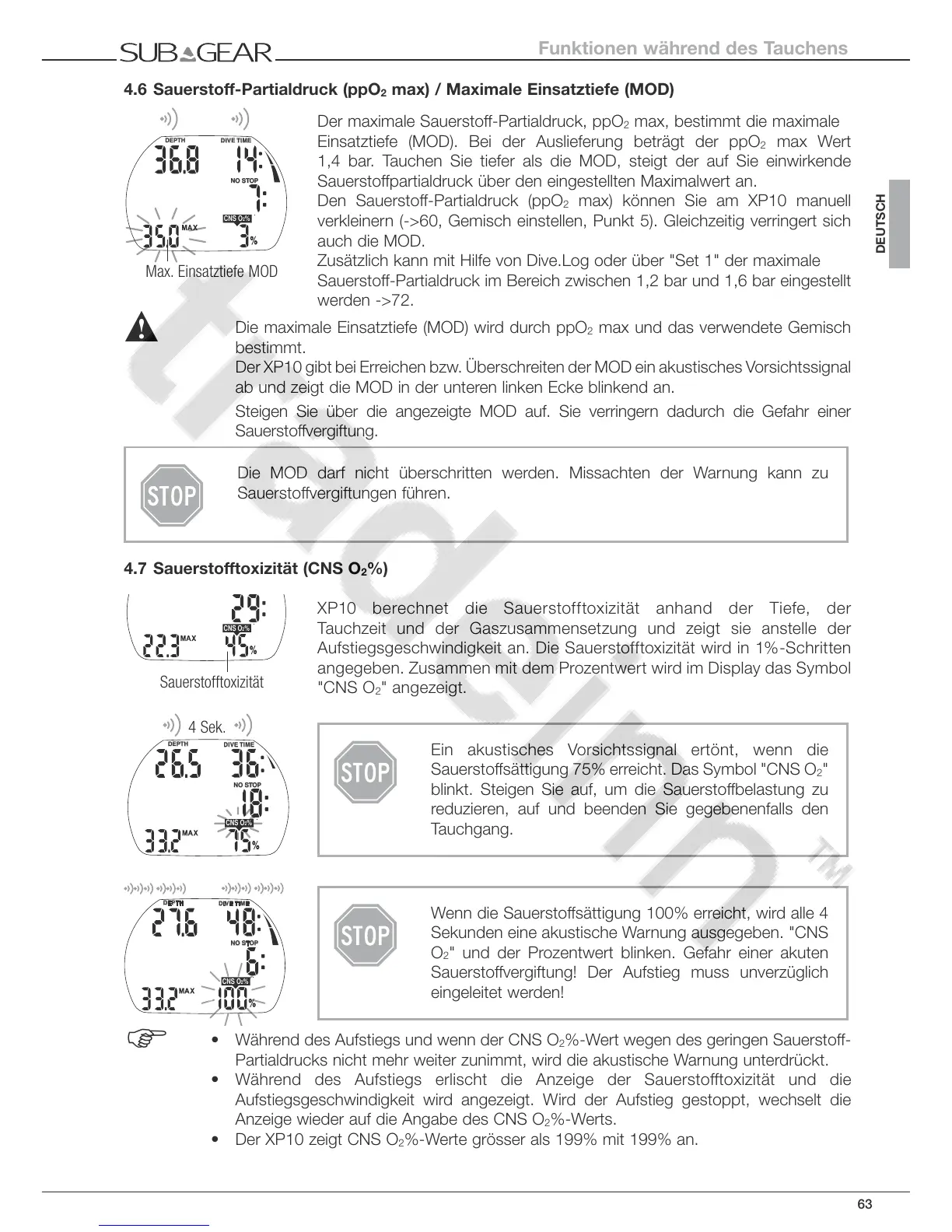 Die maximale Einsatztiefe (MOD) wird durch ppO