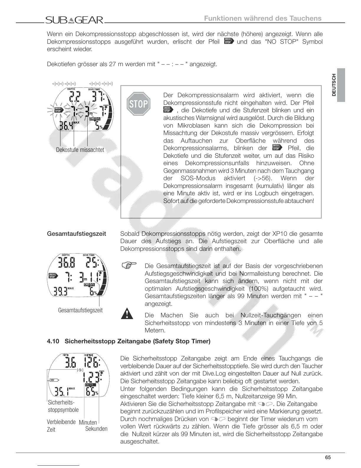 4.10 Sicherheitsstopp Zeitangabe (Safety Stop Timer)