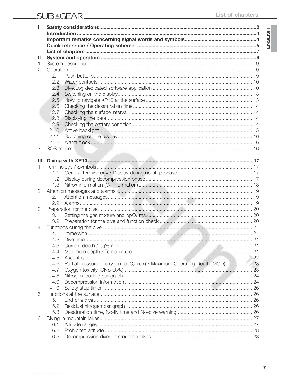 3 Preparation for the dive .............................................................................................................. 20