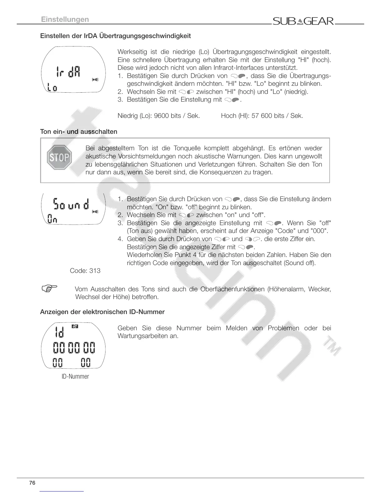 Vom Ausschalten des Tons sind auch die Oberflächenfunktionen (Höhenalarm, Wecker,