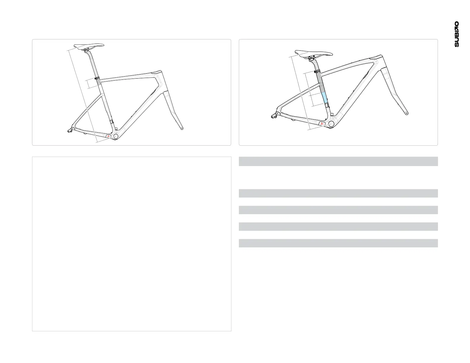 Refer to the table adjacent for details on saddle height and seatpost insertion limits: