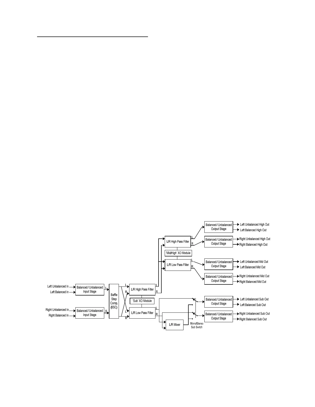 enter from the left and are received and buffered by the ‘Balanced/Unbalanced Input Stage’ circuits. Note that the balanced and