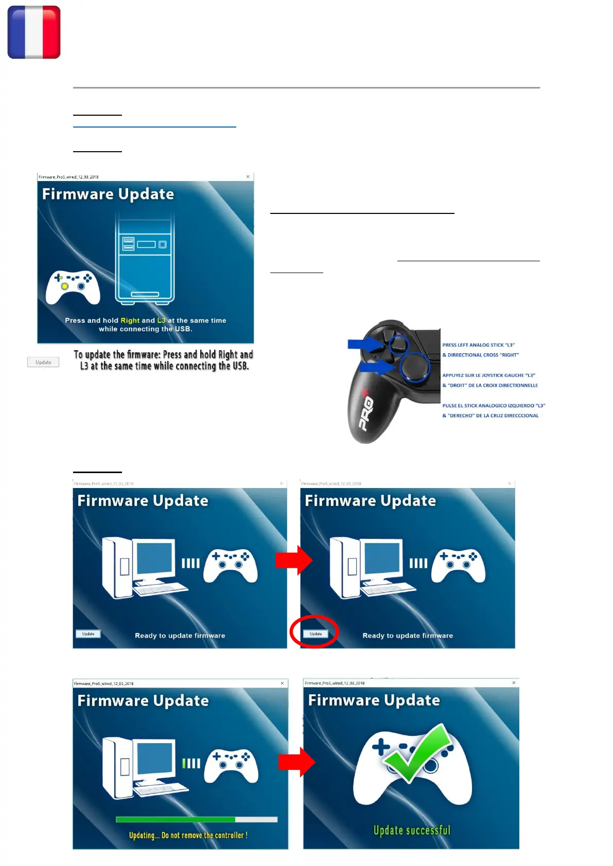 Manette Filaire Pro4 pour PS4 / PS3 - Mise à jour du firmware