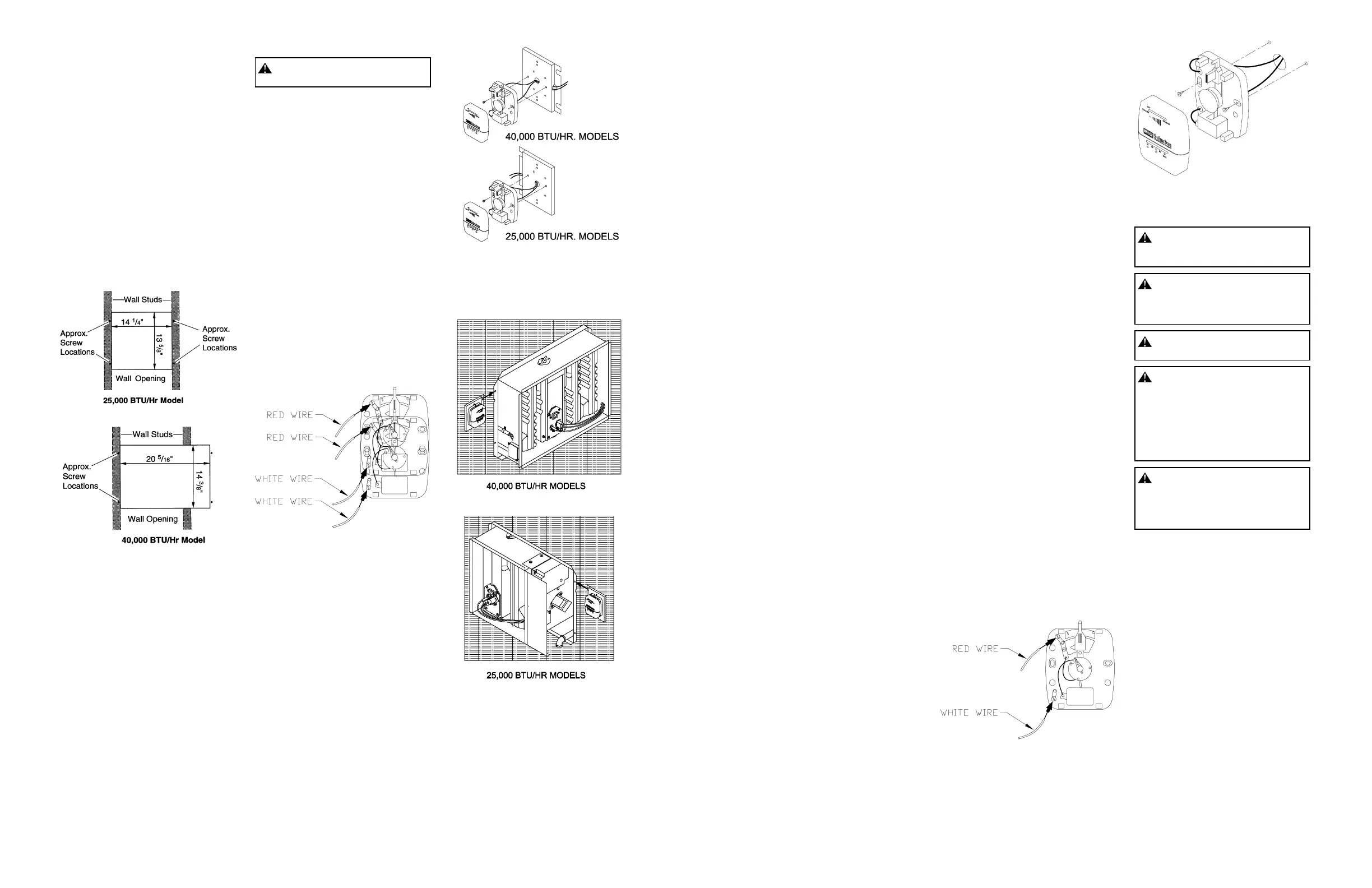 BTU/Hr models. Make opening 20