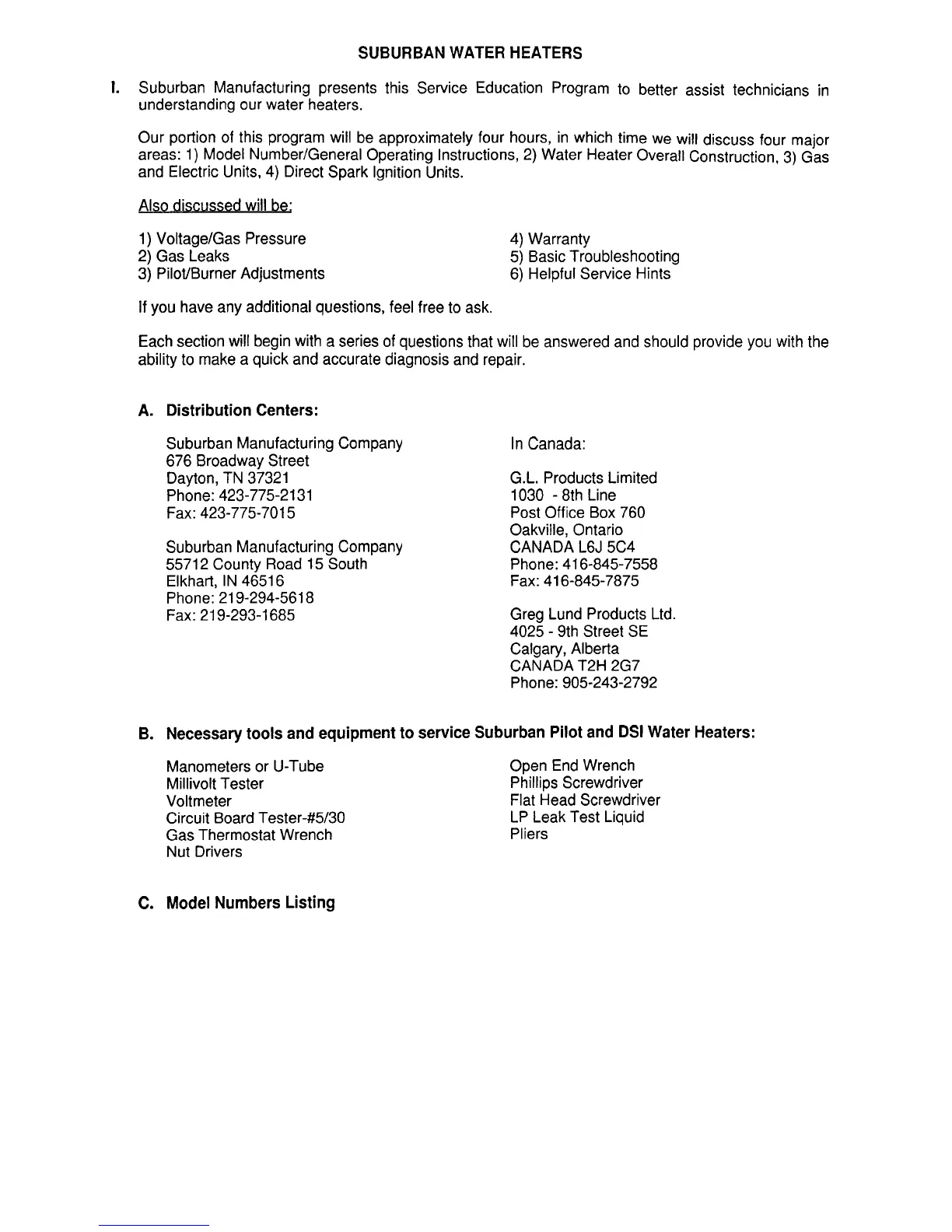 Suburban Manufacturing presents this Service Education Program to better assist technicians in