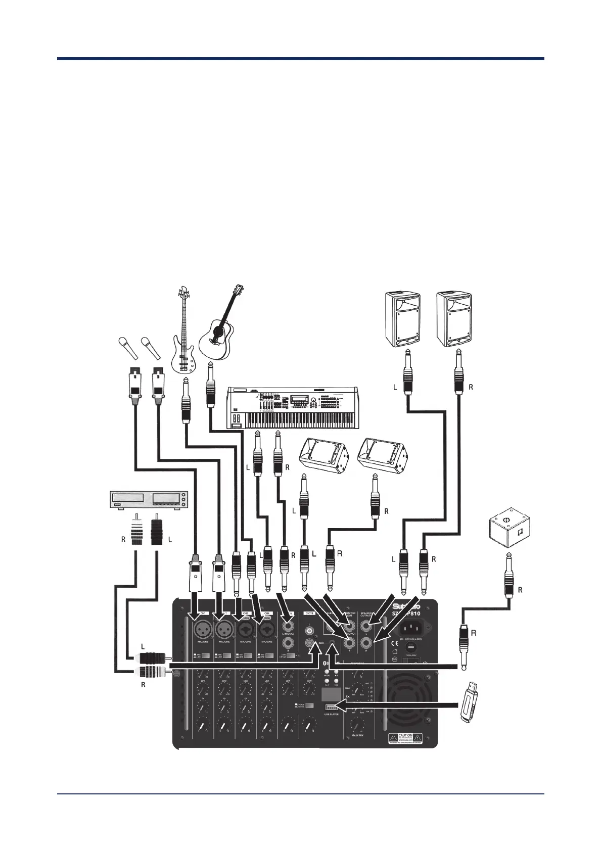 (channels 1 to 4), connect a bass and guitar to the