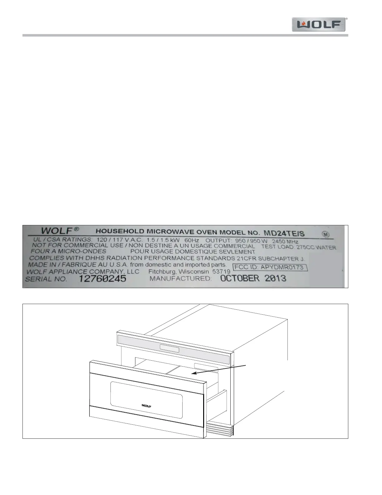 • All Warranty and Service information collected by Wolf Appliance, Inc. is arranged and stored under the unit seri-