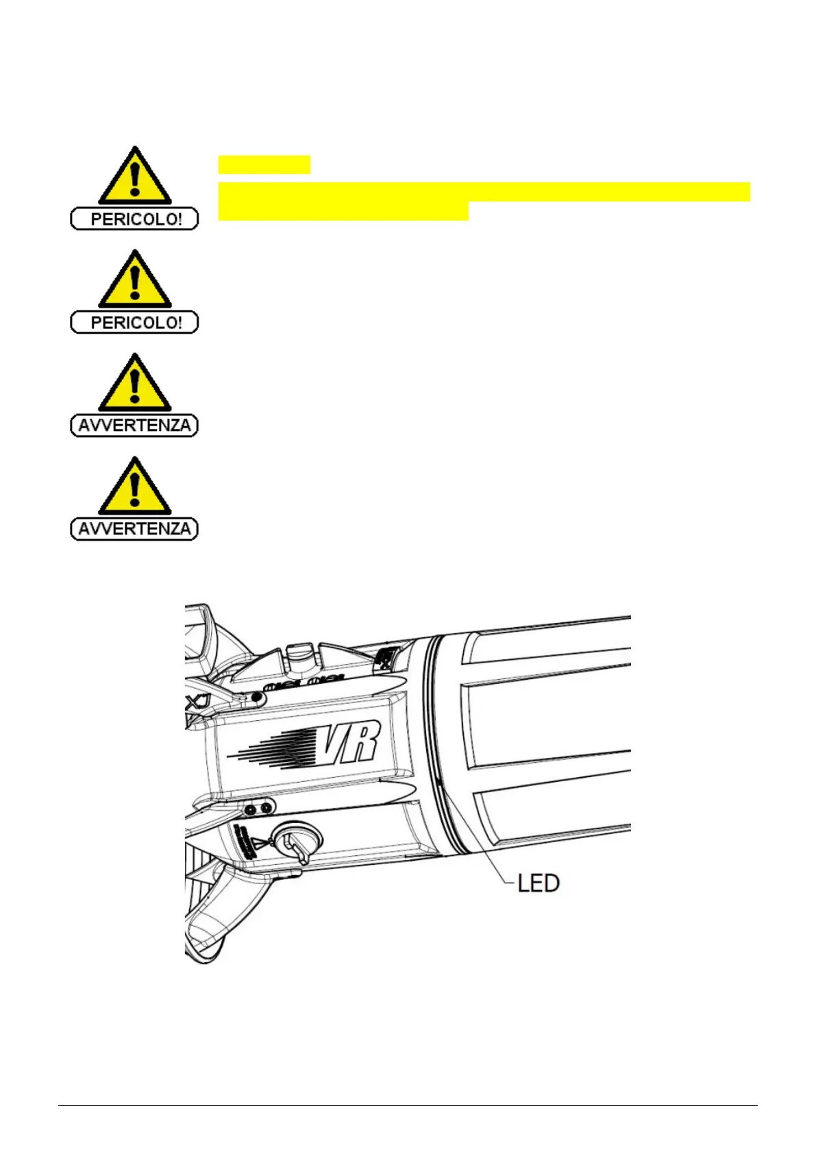 • RED LED lights up when the battery is almost empty and warns that approximately 15 minutes are still available