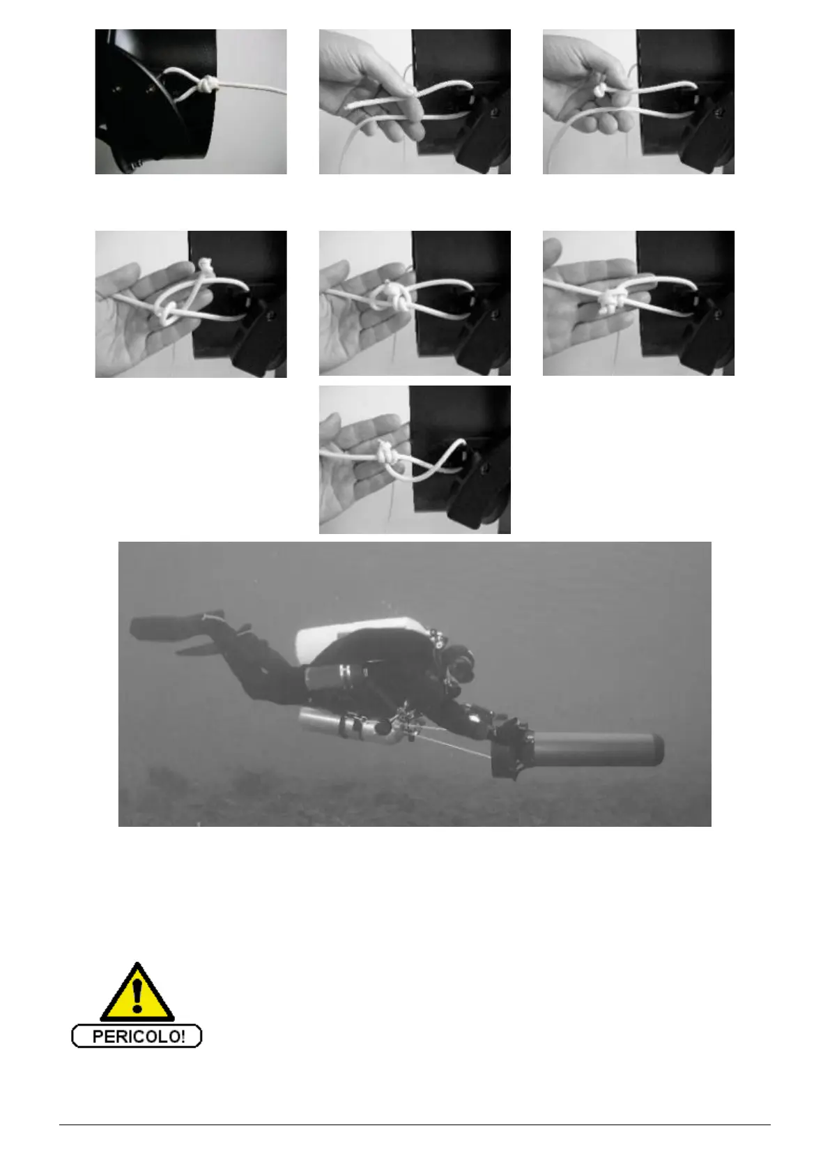 For good traction efficiency the length of the tow rope must be adjusted taking into account the build of the diver: it