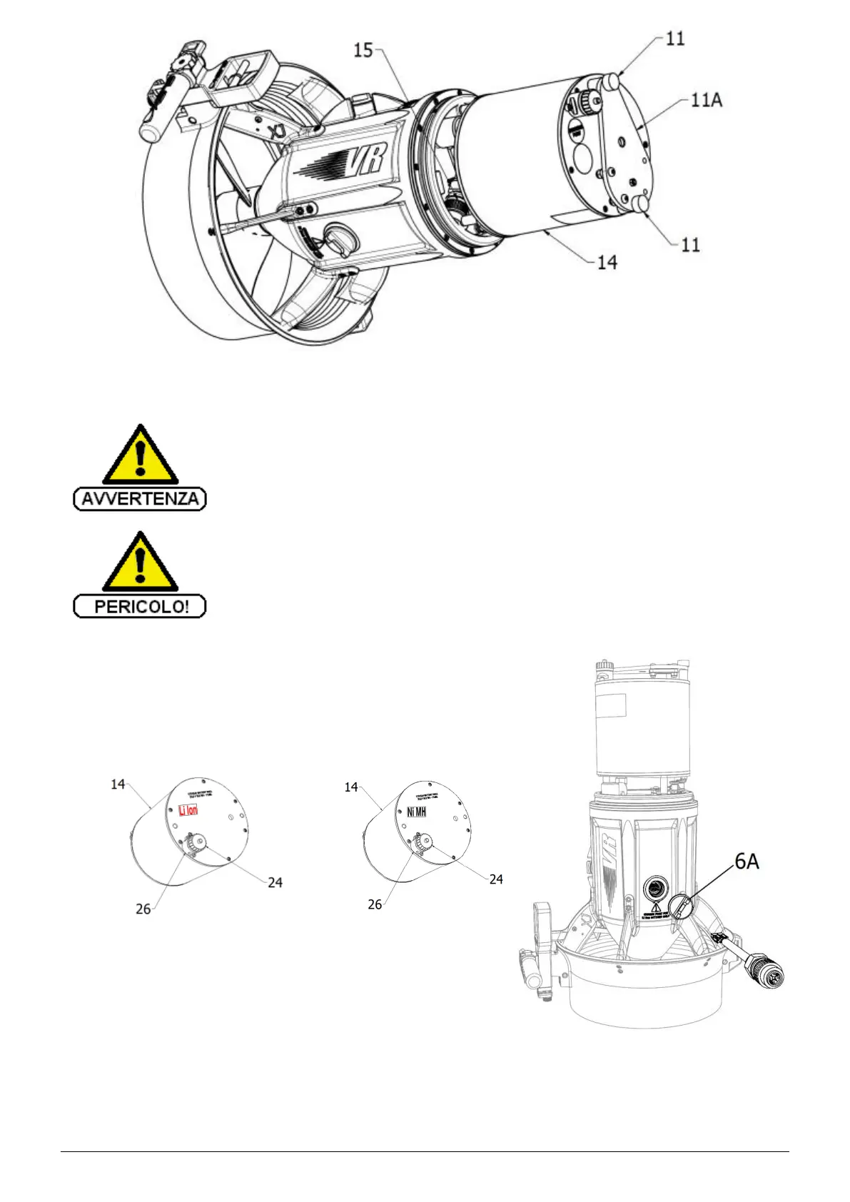 LA BATTERIA VA RICARICATA SOLO TRAMITE IL CONNETTORE (26 - Fig.4),