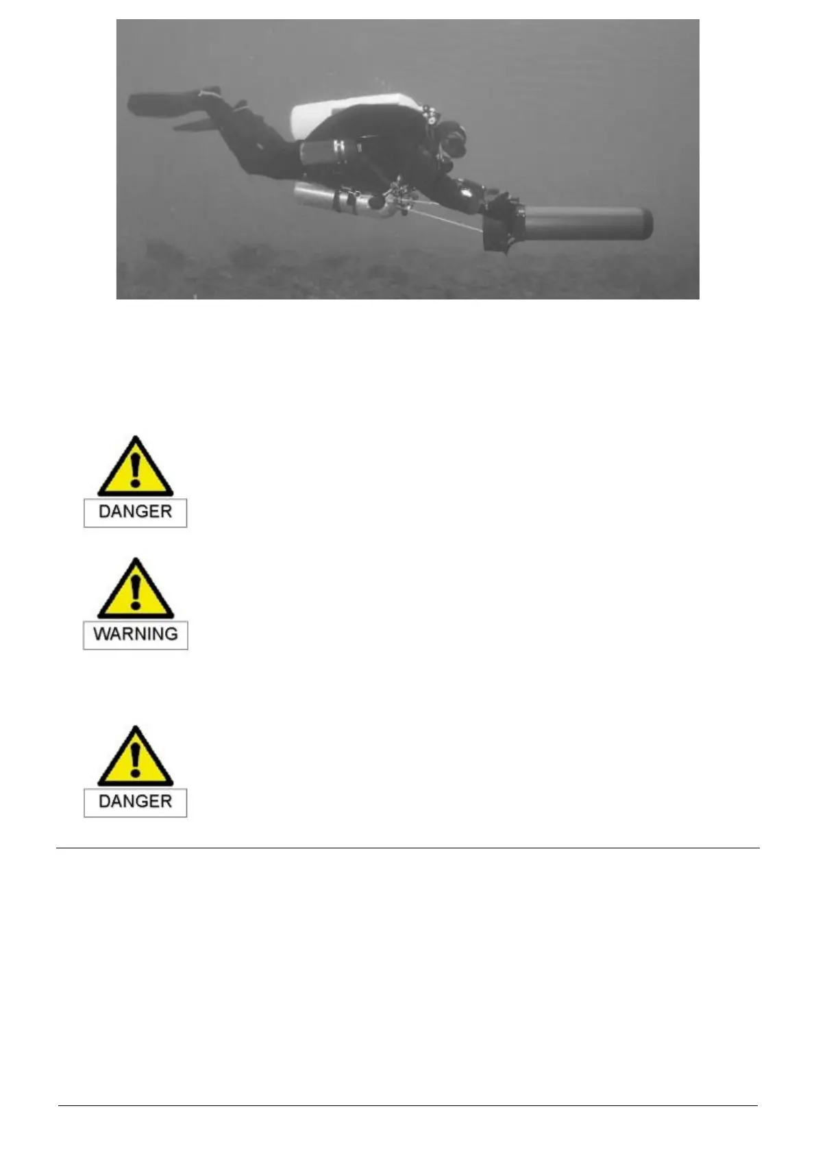 The figure above shows a diver in a technical configuration with a correct position of the SCOOTER with respect to