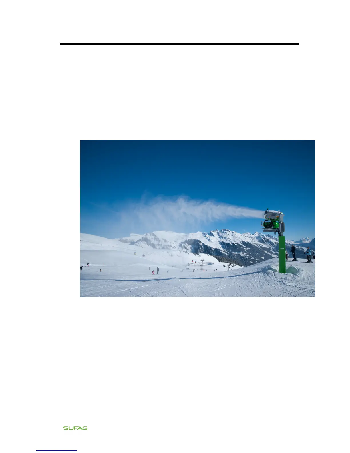 Snowmaker sprays a fine mixture of water and air via a nozzle ring