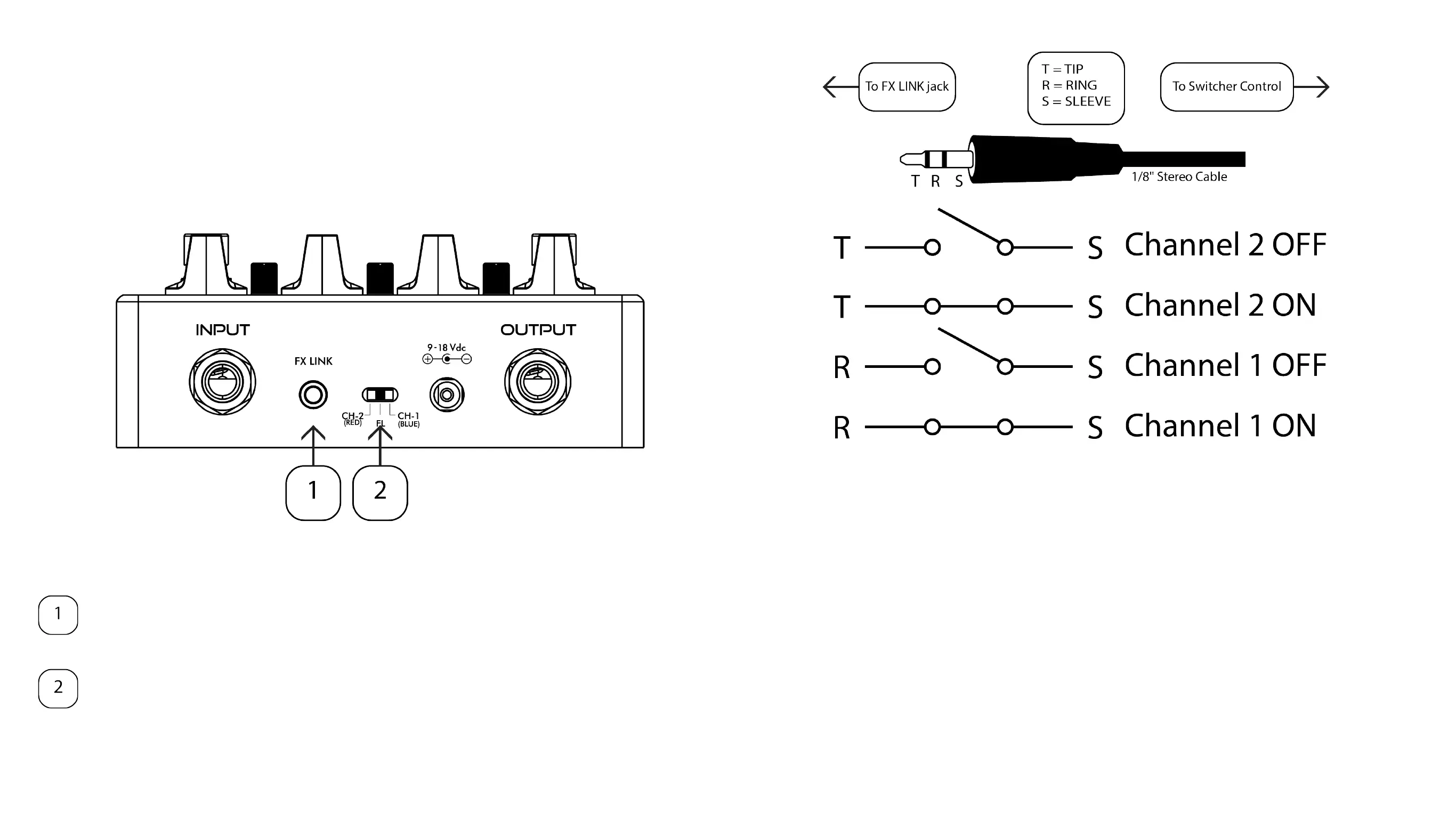 A connection between the Ring and Sleeve controls Channel 1’s ON/OFF