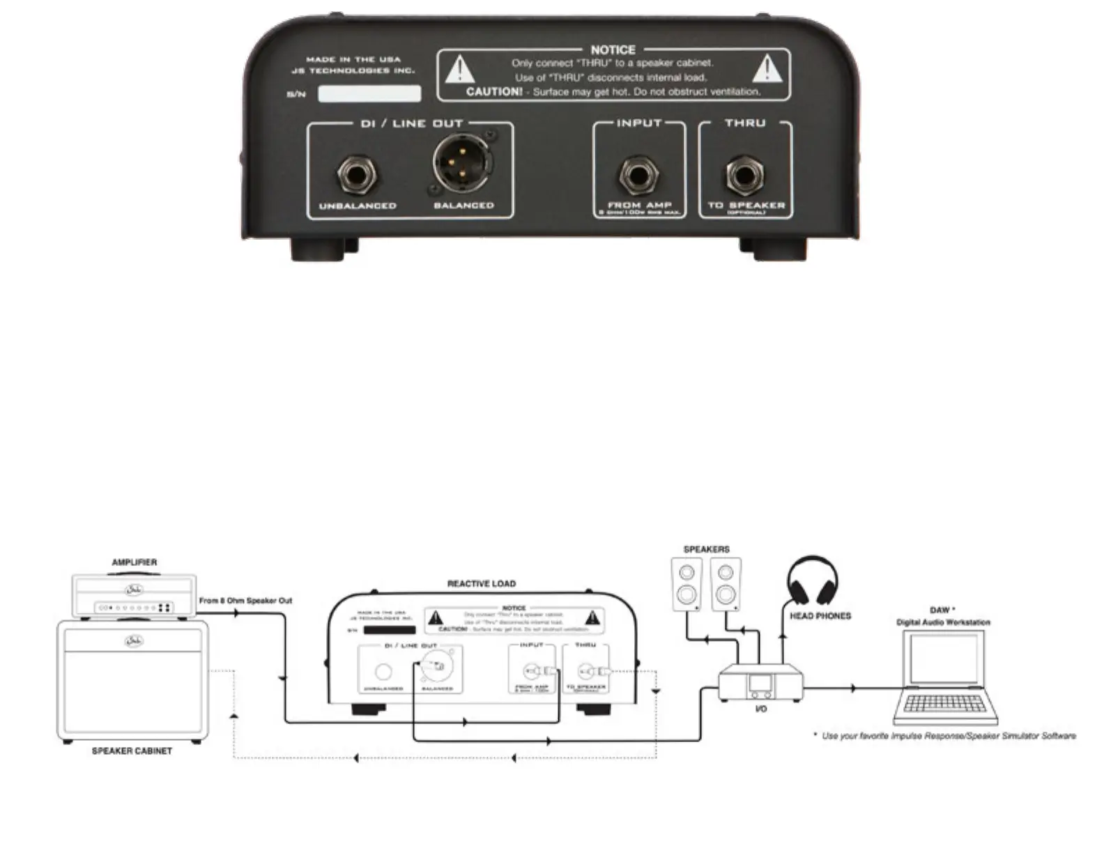 connect the Reactive Load to a recording device, effect, or power amplier.