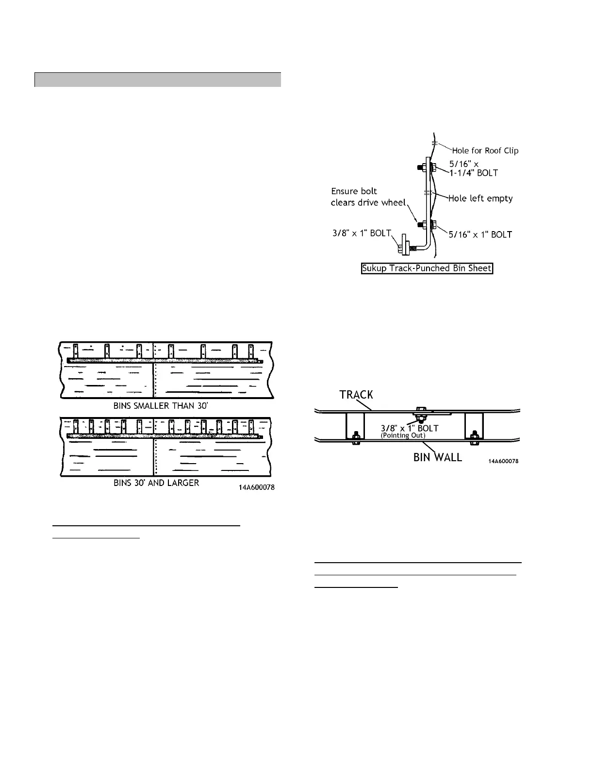 A1 For Sukup bins smaller than 30’, insert 5/16” x 1-