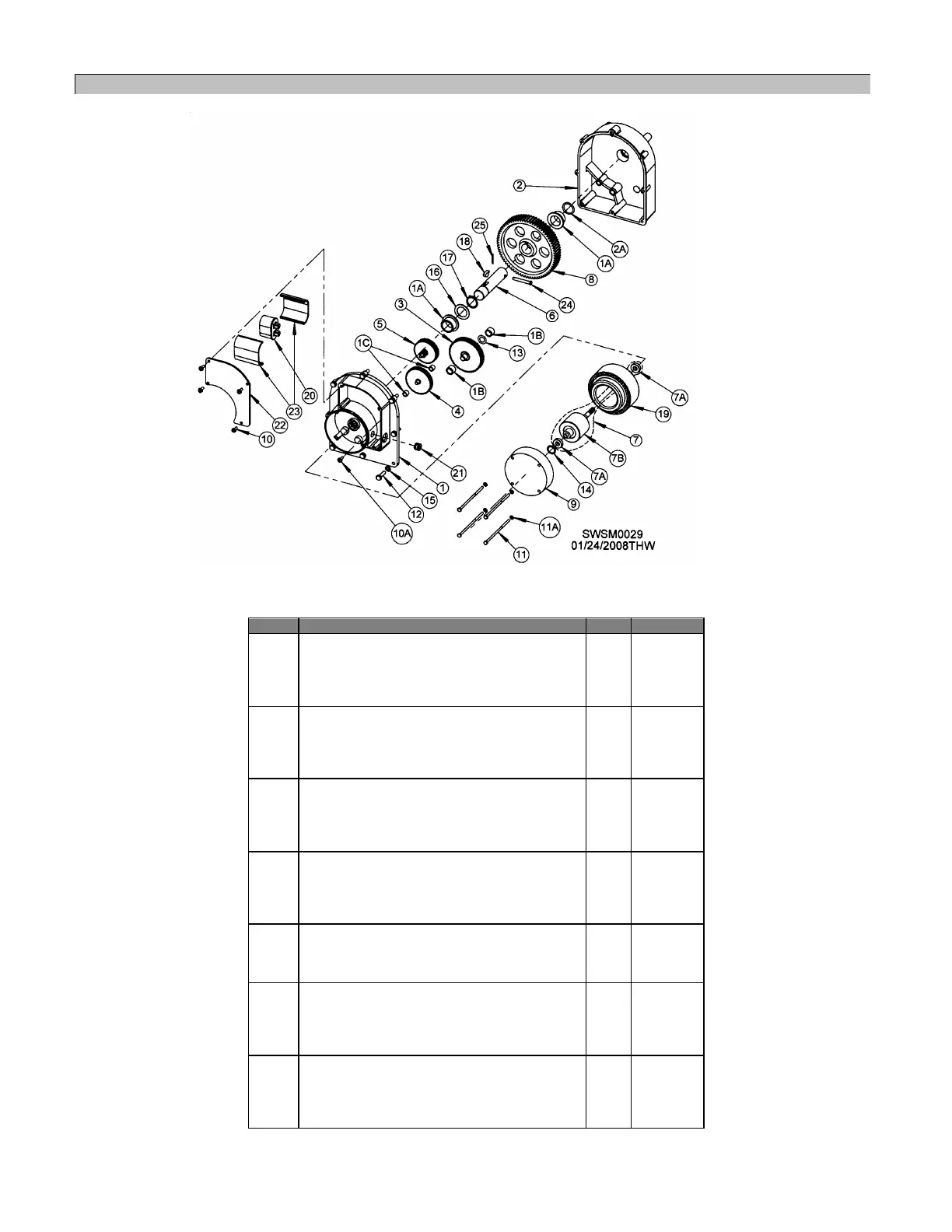 Table 32 - Gearmotor Parts List