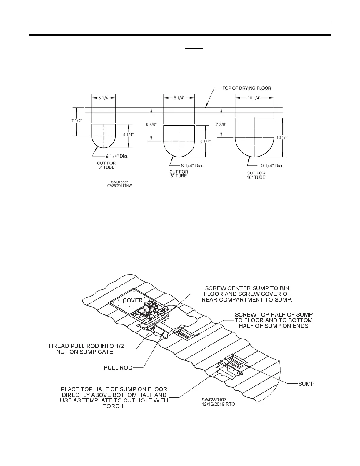 planks past center of bin. NOTE: Floor planks must run perpendicular to unload tube.