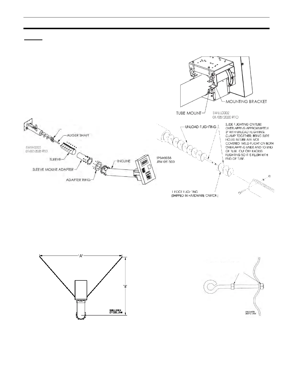 Temporarily support incline. Attach unload auger to shaft in incline using previously removed hardware.