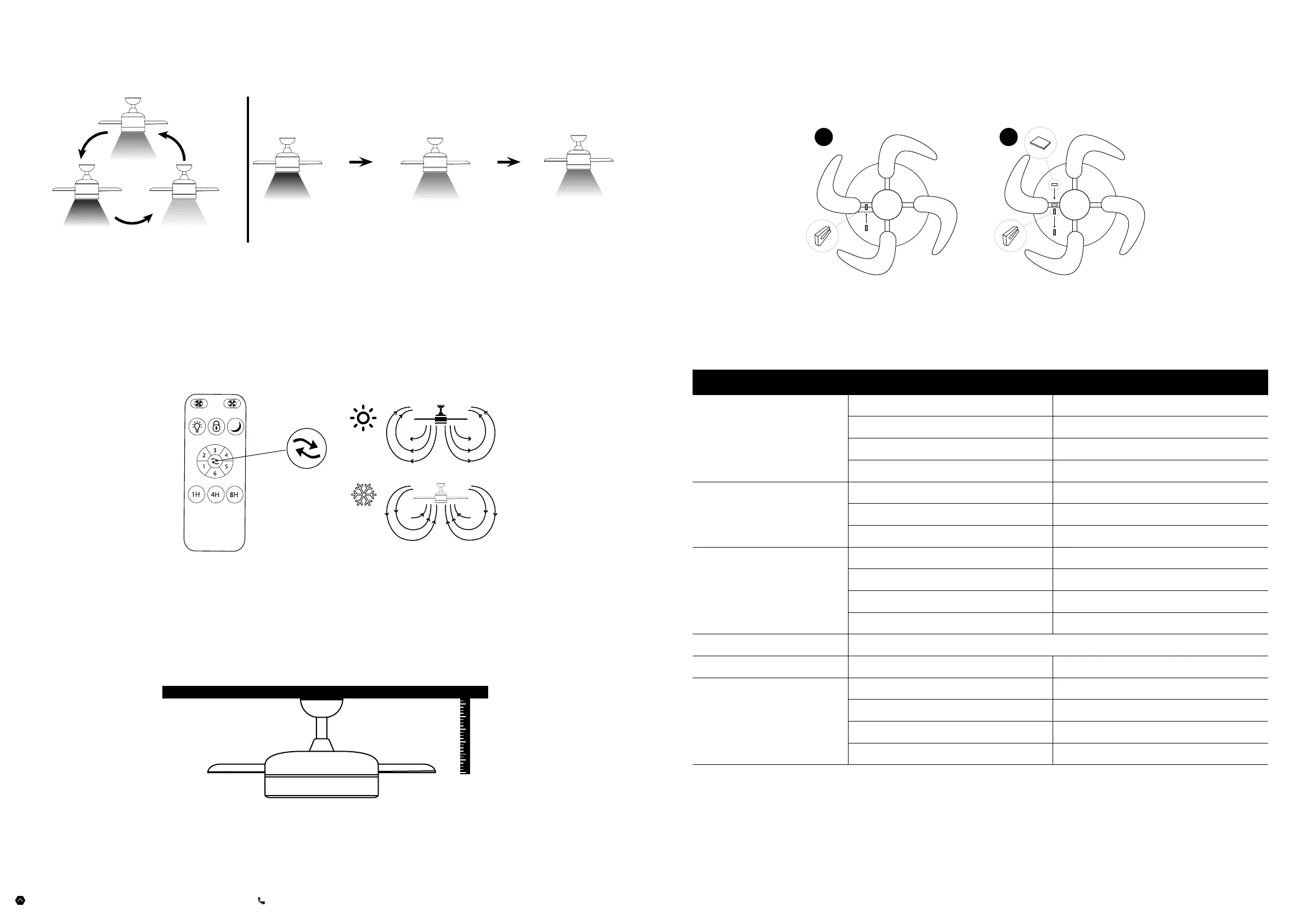 Winter option/up - or right-facing position (depending on the model) - The fan runs clockwise. An ascending air current