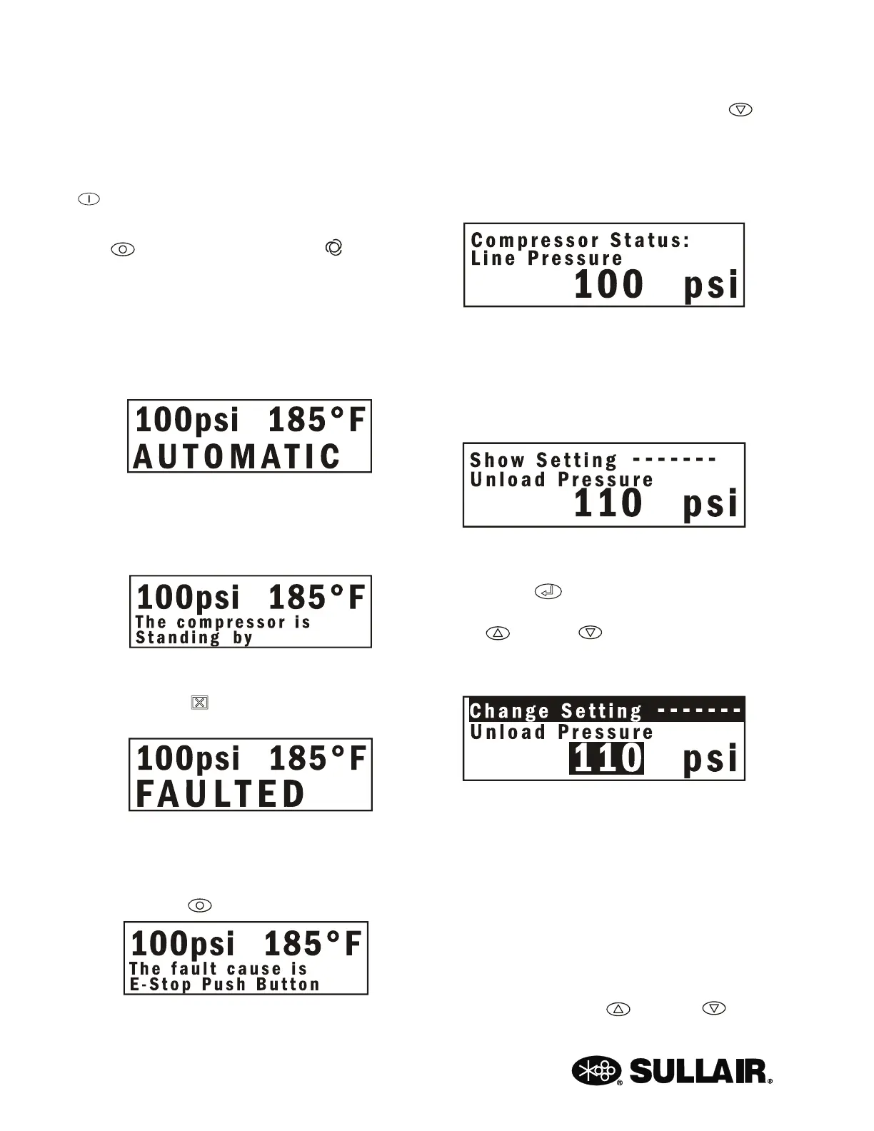 compressor operation, press the green Start pad