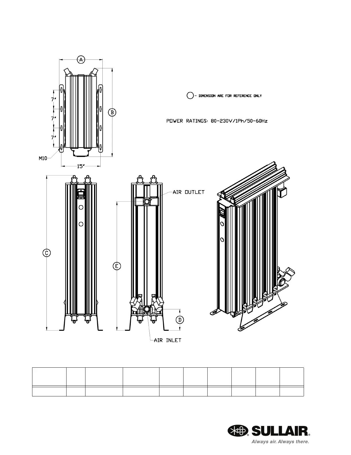 A (in) B (in) C (in) D (in) E (in)