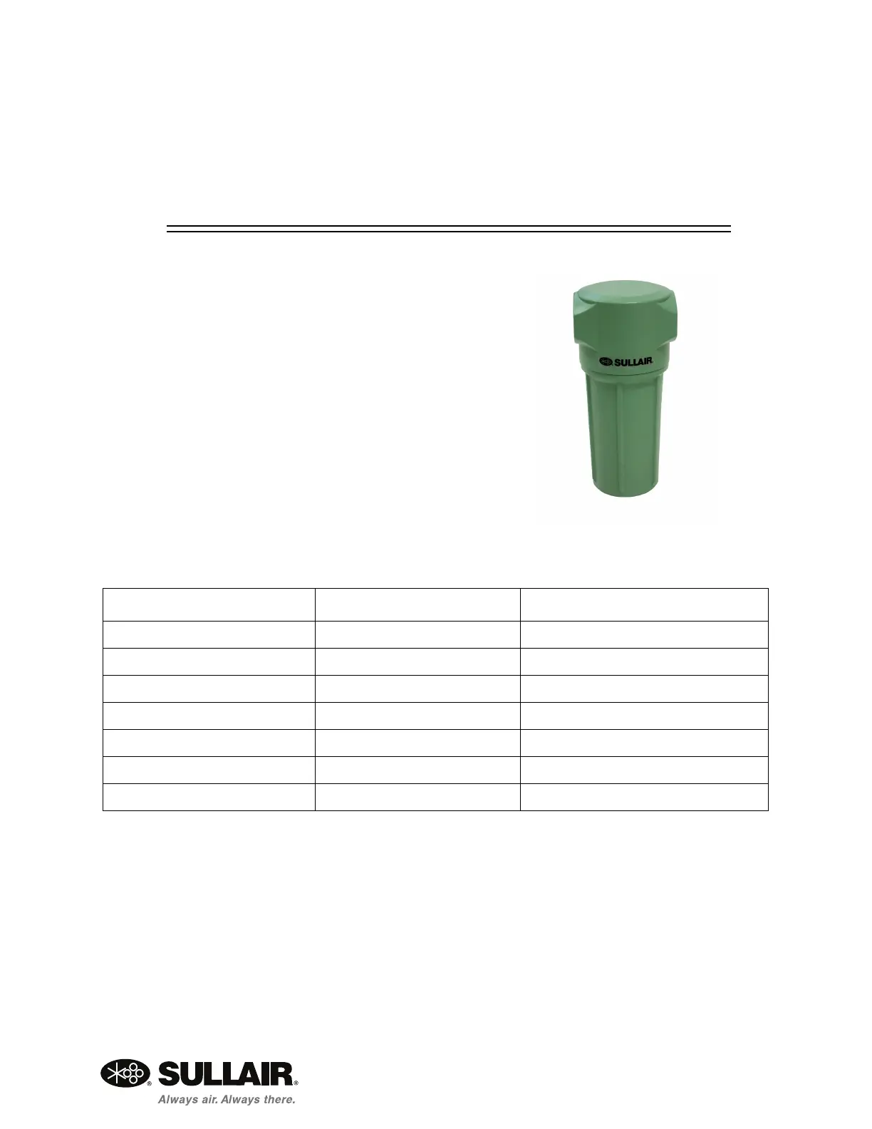 SULLAIR PART NUMBER MODEL NUMBER Description