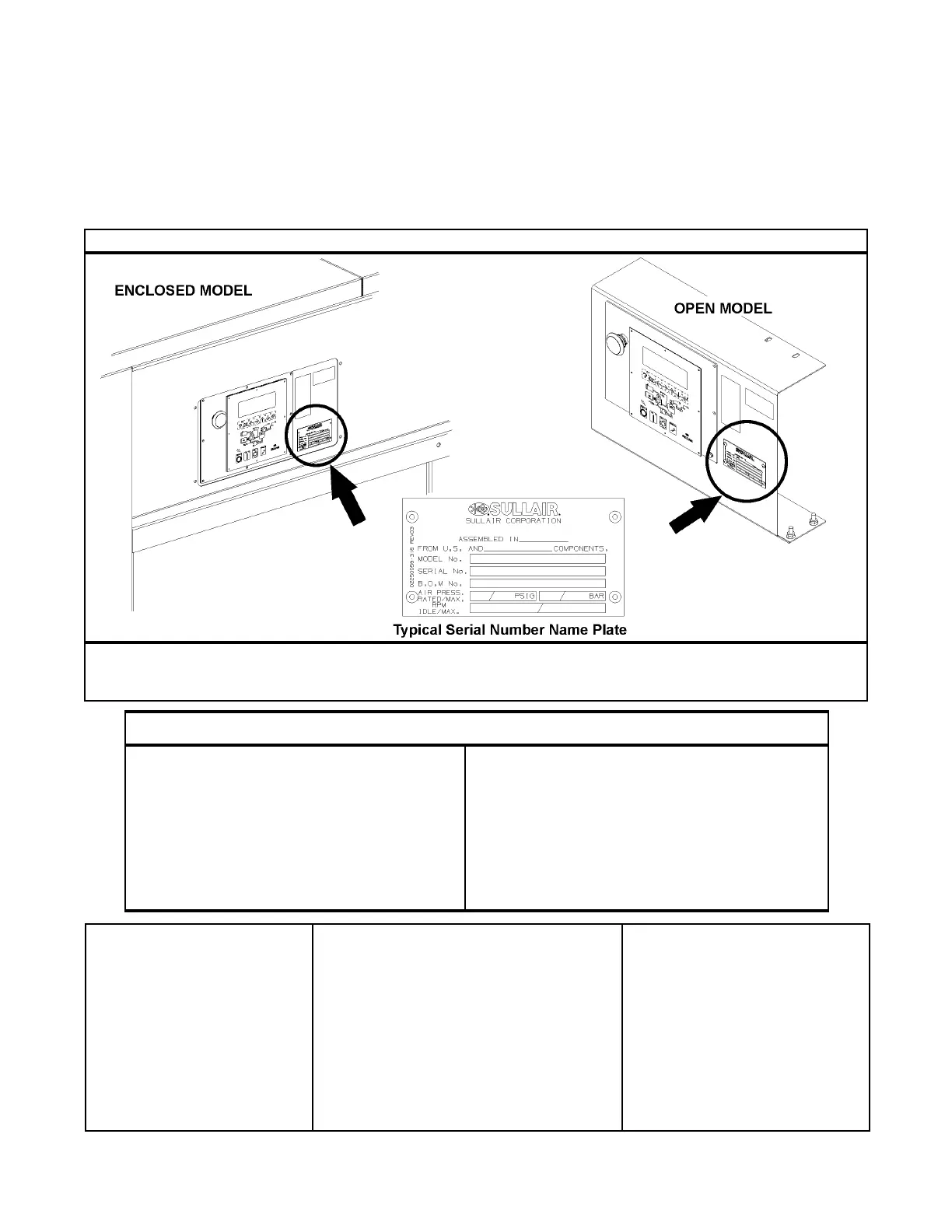 the compressor. This can be obtained from the Bill of Lading for the compressor or from the Serial Number