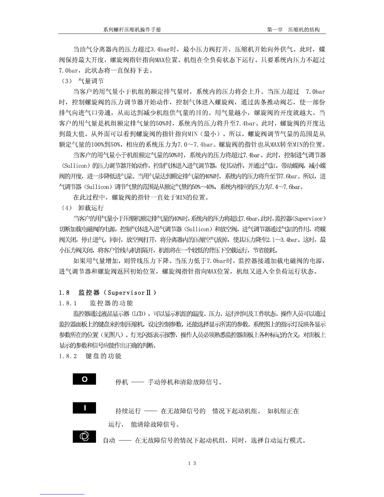 Sullair LS25S-350 - 1.8.1 Functions of the Monitor